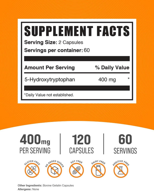5-HTP Capsules 400mg - Gluten Free 5-Hydroxytryptophan Supplement for Well-Being - 120 CapsulesVendor:BulkSupplementsRegular price $97.39 AUDRegular priceUnit price / per-