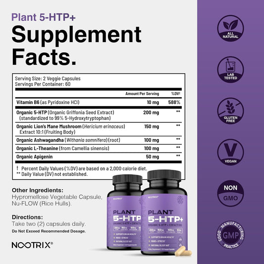 Organic Plant 5 HTP+ Cofactor Capsules - 200mg | Brain Supplement for Mood, Cognitive Health, Sleep | Vitamin B6 & L Theanine | 360 CountVendor:NootrixRegular price $229.93 AUDRegular priceUnit price / per-