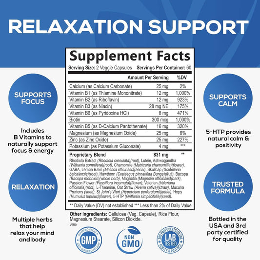 Organic Stress Relief & Relaxation Support Capsules with Ashwagandha, GABA, Magnesium, 5-HTP, L-Theanine & B Vitamins - Non-GMO, Vegan, Gluten-Free - 120 CountVendor:Nature's NutritionRegular price $111.37 AUDRegular priceUnit price / per-