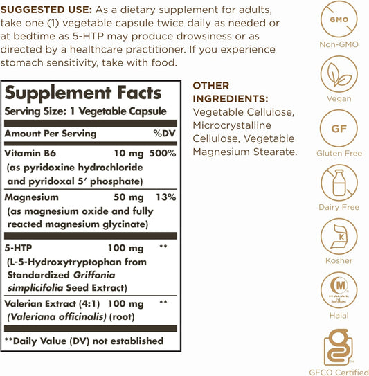 Solgar 5-HTP 100mg Capsules - Supports Relaxation - Non-GMO, Vegan, Kosher, Halal, Gluten-Free - 90 ServingsVendor:SOLGARRegular price $133.14 AUDRegular priceUnit price / per-