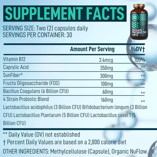 Vegan Probiotic Plus B12 - 22 Billion CFU Synbiotics for Gut Health & Mood Support - Gluten-Free Capsules for Women & MenVendor:WILD FUELRegular price $134.51 AUDRegular priceUnit price / per-
