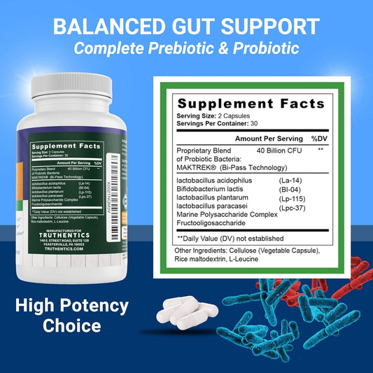 40 Billion CFU Probiotic with Prebiotics for Men & Women - Gluten Free, Non-GMO - Made in USA - 60 CapsulesVendor:TRUTHENTICSRegular price $125.81 AUDRegular priceUnit price / per-