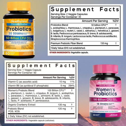 Gut Balance Bundle: Probiotics 50 Billion CFU & Women’s Probiotics (100B CFU), Daily Support for Gut Health and Feminine Care - 120 Capsules (2 Pack)Vendor:NewRhythmRegular price $144.19 AUDRegular priceUnit price / per-