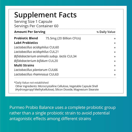 20 Billion Lab4 Probiotics for 8 Weeks Gut Health Support - Relief for IBS, Diarrhea & Bloating - Lactobacillus Acidophilus & Bifidobacteria - 60 Day Supply
