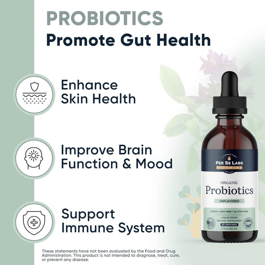 Per Se Labs Liquid Probiotics for Women Men & Kids | Digestive & Gut Health Support | Bifidogenic & Lactobacillus Acidophilus Blend | Alfalfa | Vegan Non-GMO | 2 Fl Oz