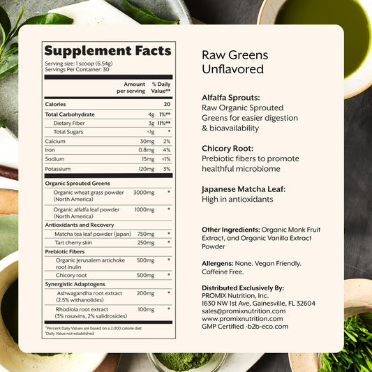 Organic Superfood Blend with Sprouted Alfalfa, Wheatgrass, Ashwagandha, & Rhodiola - 30 Servings by ProMix NutritionVendor:ProMix NutritionRegular price $221.49 AUDRegular priceUnit price / per
