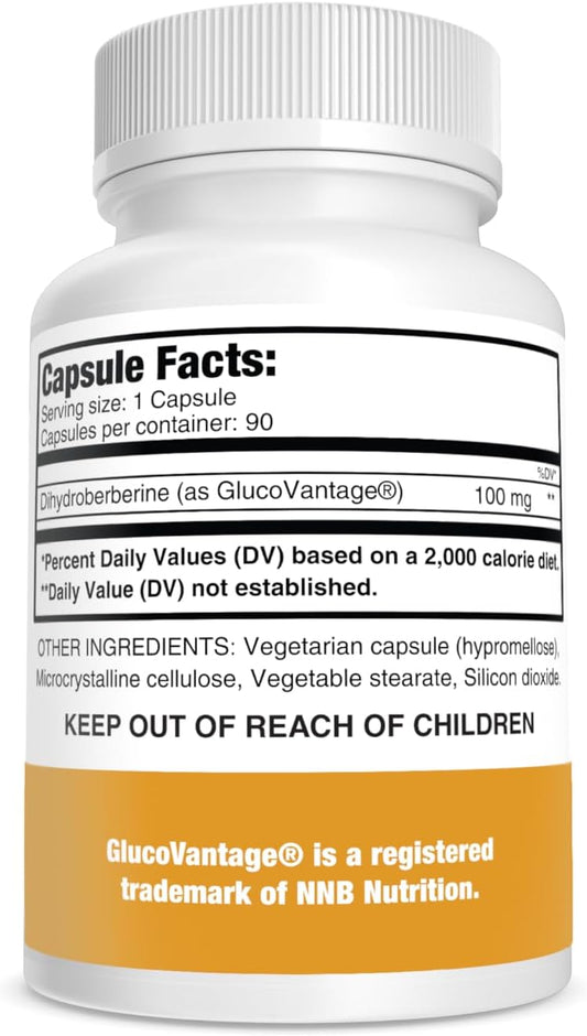 100 mg 90 Capsules Pure Dihydroberberine Supplement (GlucoVantage) for Enhanced Mental Clarity and Focus