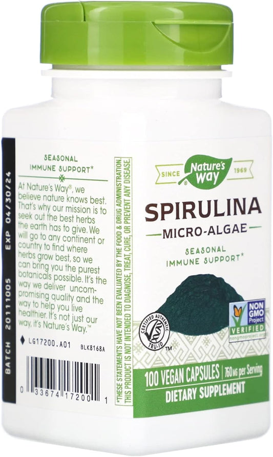 100 Nature's Way Spirulina Micro-Algae Capsules - 380 mg Vegan Supplement
