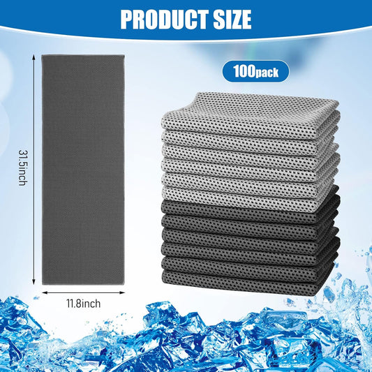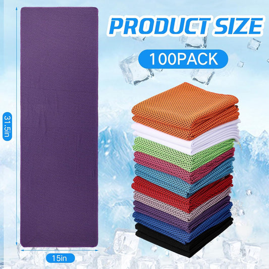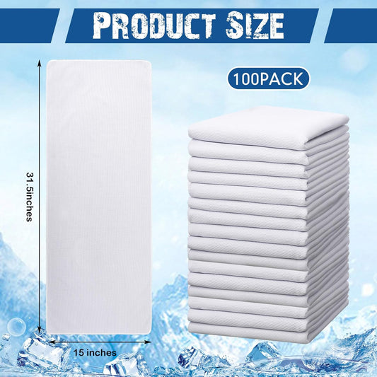 100 Pack Microfiber Cooling Towels for Sports, Gym, Yoga, Golf, and Beach - Breathable Ice Towels for Neck and Face