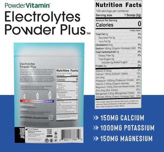 100 Servings Electrolyte Powder with Vitamin and Minerals for Keto Diet - Unflavored, Sugar Free, No Stevia, 1000mg Potassium, 150mg Calcium, 150mg Magnesium - Hydration Supplement