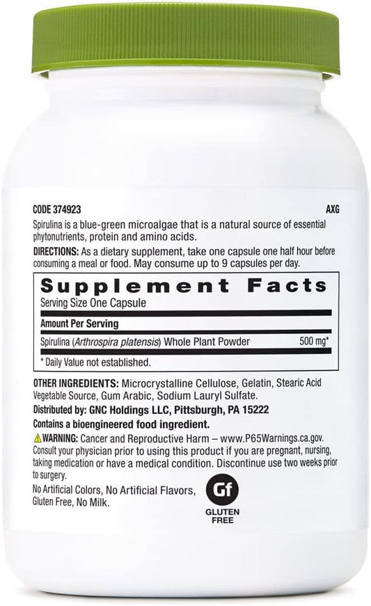 100 Servings of GNC SuperFoods Spirulina Whole Plant Powder Capsules in 100 Capsules