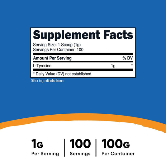 100 Servings of Nutricost L-Tyrosine Powder - 1G per Serving, 100 Grams