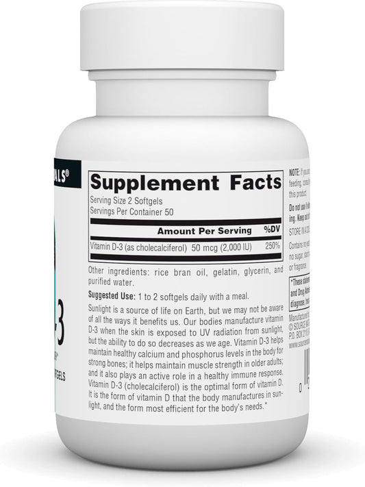 100 Softgels of Source Naturals Vitamin D-3 1000 iu for Bone & Immune Health