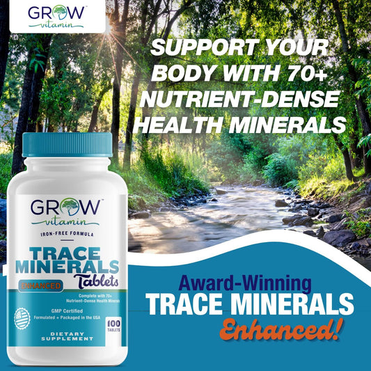 100 Tablets of grow vitamin Trace Minerals Enhanced Complex - 70+ Nutrient-Dense Health Minerals - All-Natural Ingredients