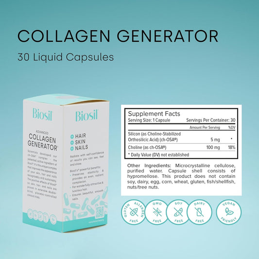 Biosil Collagen Generator Capsules - Patented ch-OSA Complex - Supports Natural Collagen Production - GMO Free - 15-Day Supply