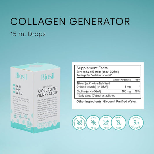 Biosil Collagen Generator Drops - 0.5 fl oz - Patented ch-OSA Complex - Stimulates & Defends Natural Collagen - Non-GMO - 30-Day Supply