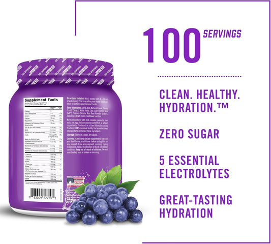 BioSteel Grape Flavor Zero Sugar Hydration Mix - 100 Servings, 5 Essential Electrolytes, Great Taste