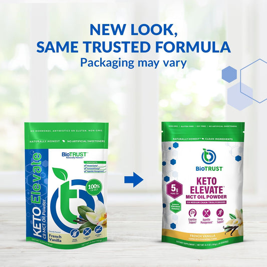 BioTrust Keto Elevate French Vanilla C8 MCT Oil Powder for Clean Energy and Mental Focus - Ketogenic Coffee Creamer with 100% Caprylic Acid MCT Powder - Non-GMO, 20 Servings