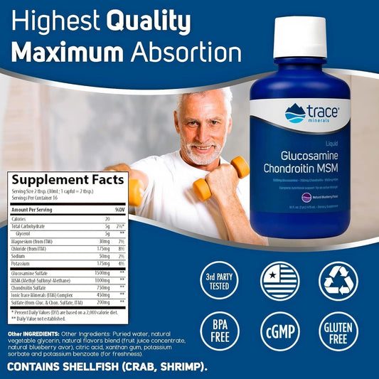 Blueberry Flavored Liquid Glucosamine Chondroitin MSM with Trace Minerals - Supports Joint Health and Mobility - 16 Servings, 16 fl oz