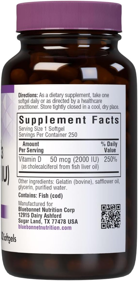 Bluebonnet Nutrition High Potency Vitamin D3 Softgels with Immune Support and Strong Bone Formula
