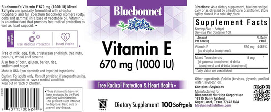 BlueBonnet Vitamin E 1000 IU Mixed Softgels - 100 Count - High Potency Supplement for Immune Support and Skin Health