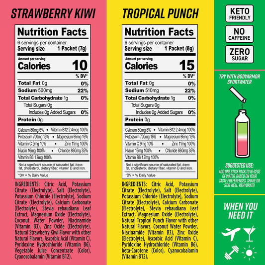 BODYARMOR Flash IV Electrolyte Packets - Strawberry Kiwi & Tropical Punch Variety Pack, 30 Count - Zero Sugar Coconut Water Drink Mix