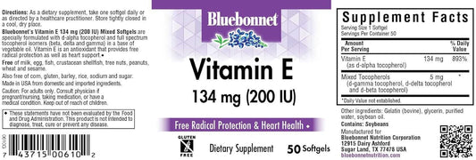BlueBonnet Vitamin E 200 IU Mixed Softgels - 50 Count - Antioxidant Support for Skin & Immune System