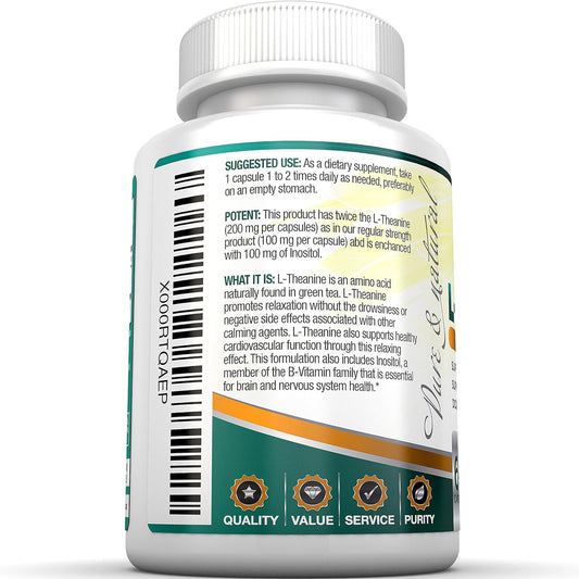BRI Nutrition L-Theanine 200mg Supplement with Inositol for Relaxation, Stress Relief, and Mood Boost - 60 Count