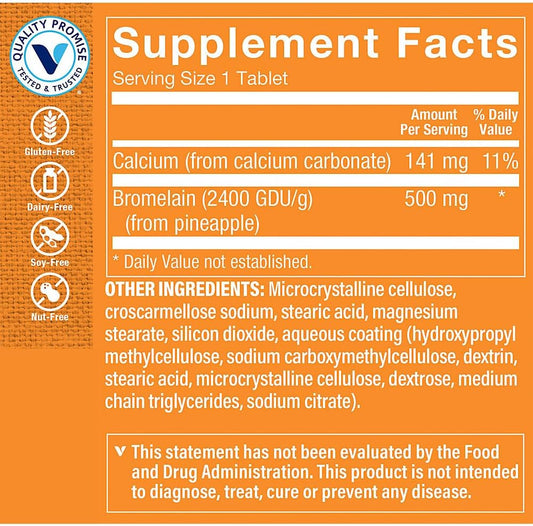Bromelain 500MG & 2,000 GDU Enzyme Tablets for Protein Digestion - Pineapple Sourced Supplements (180 Count)