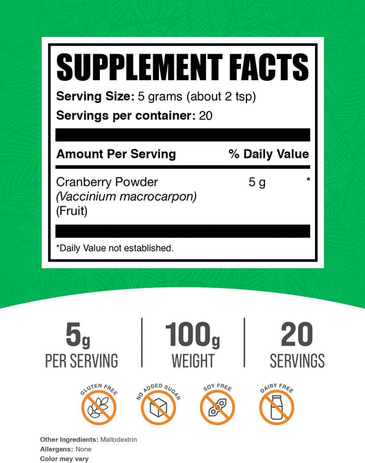 BulkSupplements.com Cranberry Powder - Unsweetened Dried Cranberry Supplements for Women & Men, Gluten and Sugar-Free, 100g (3.5 oz)