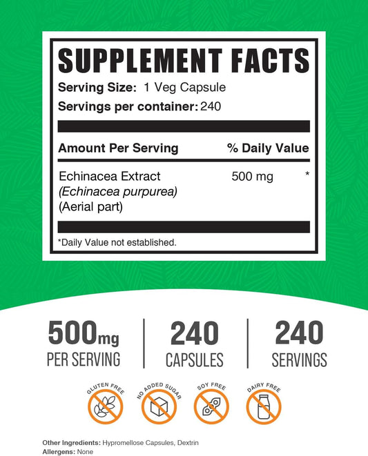 BulkSupplements.com Echinacea Extract Capsules - 500mg Immune Support Supplement, Gluten Free - 240 Capsules