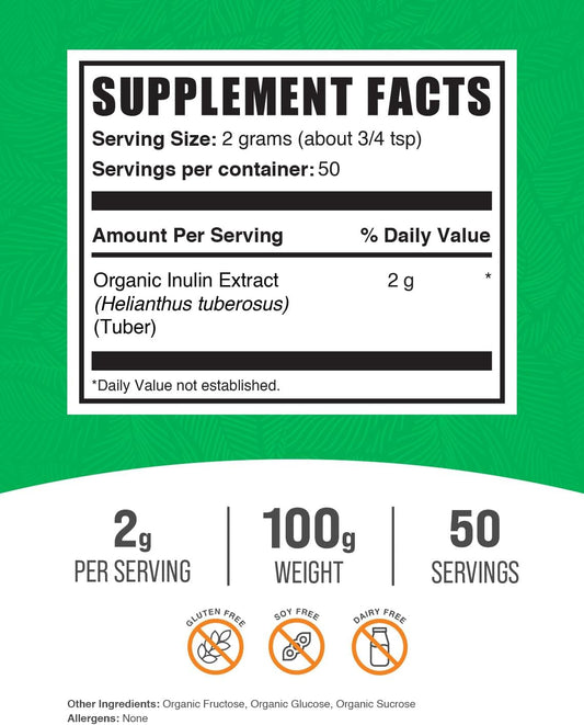 BulkSupplements.com Organic Inulin Powder - Gluten-Free Fiber Herbal Supplement - 2g per Serving, 100g (3.5 oz) (1 Pack)