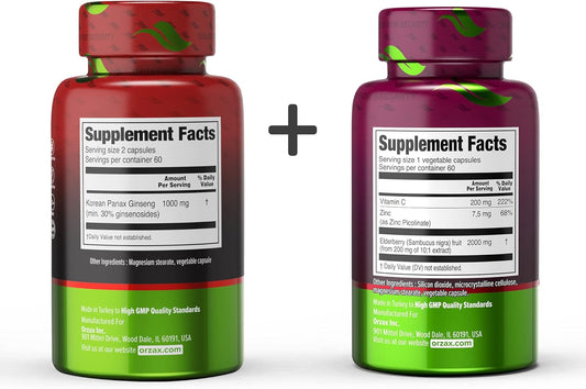 Bundle: ORZAX Ginseng Capsules (30% Ginsenosides, 120 Capsules) + Elderberry Capsules (2000mg, 60 Capsules)