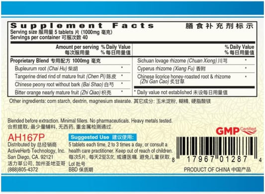 Bupleuri LiverSoothe AH167P Herbal Supplement by Guang Ci Tang Chai Hu Shu Gan Pian