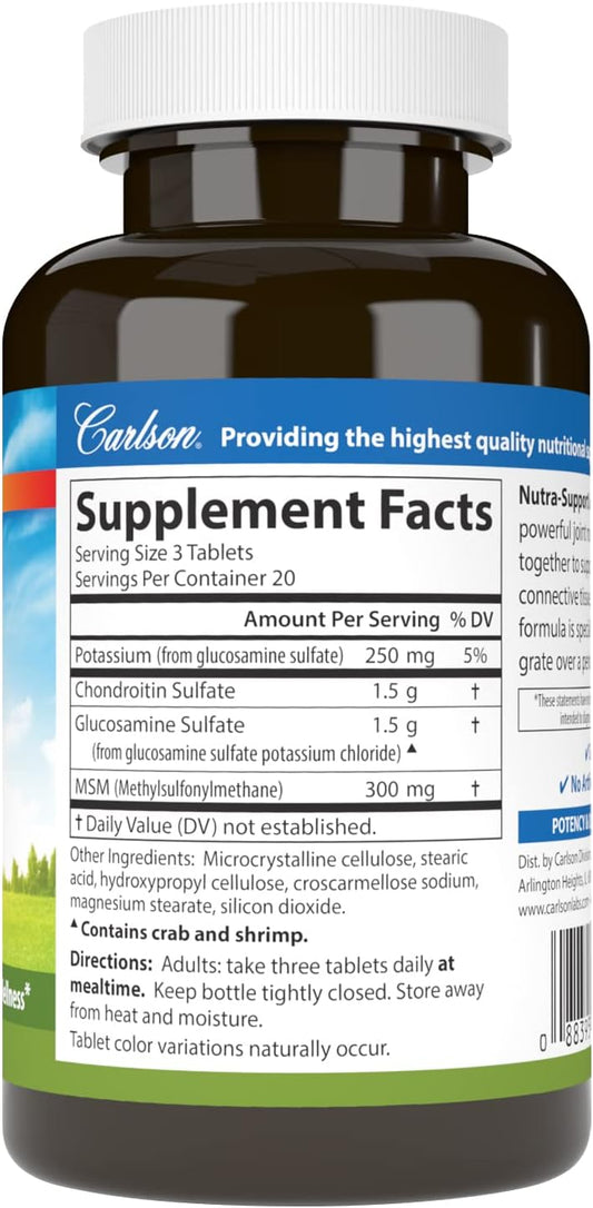 Carlson Nutra-Support Joint Supplement with Glucosamine, Chondroitin, MSM - 180 Tablets for Joint Function and Cartilage Support