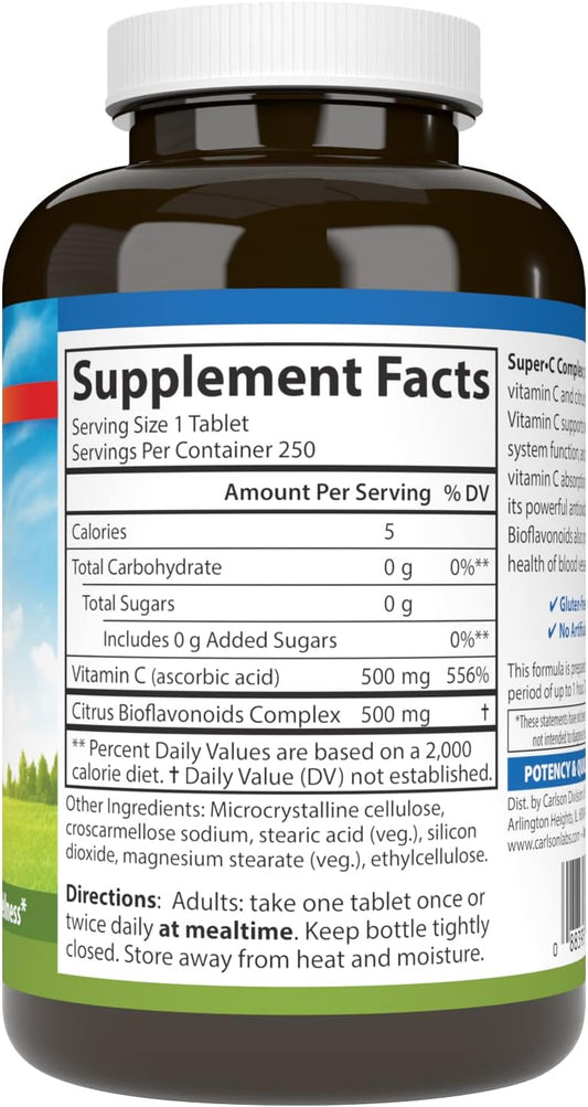 Carlson Super-C Complex: Vitamin C with Bioflavonoids for Immune Support & Antioxidant Protection, 250 Vegetarian Tablets
