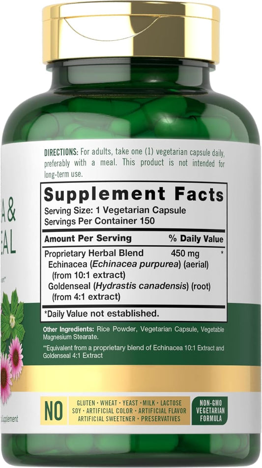 Carlyle Echinacea Goldenseal Capsules - 150 Count - Vegetarian, Non-GMO, Gluten Free - Immune Support Supplement
