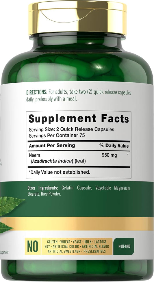 Carlyle Neem Leaf Powder Capsules - 950mg, 150 Count - Non-GMO Gluten Free Herbal Supplement