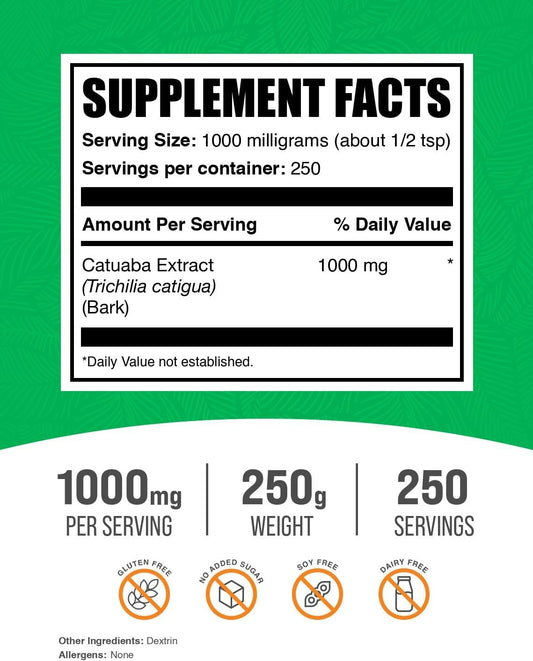 Catuaba Bark Extract Powder for Energy Support - Gluten Free, Sugar-Free - 1000mg per Serving, 250 Servings - 250g (8.8 oz)