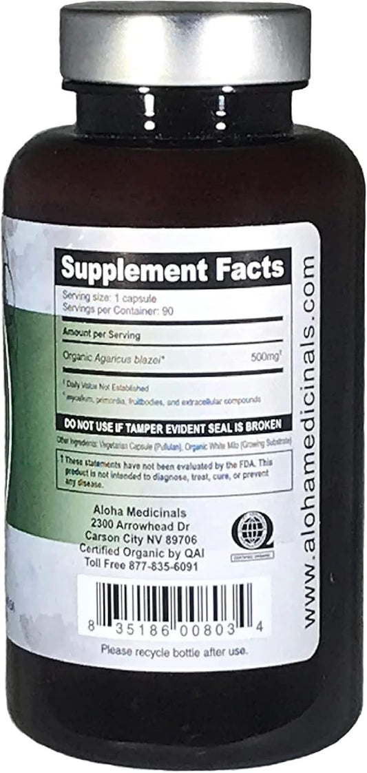 Certified Organic Aloha Medicinals Pure Agaricus Blazei 500 mg Vegetarian Capsules - 90 Count