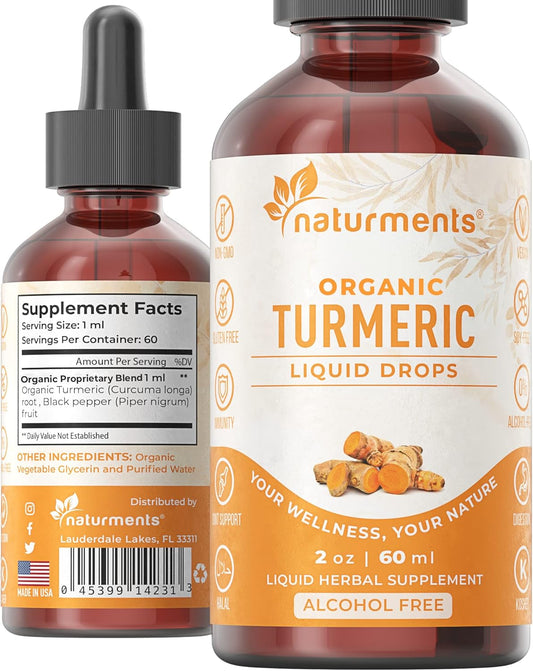 Certified Organic Turmeric Curcumin Liquid with Ginger & Black Pepper for Joint, Immune, Digestive Support - 2 Fl Oz