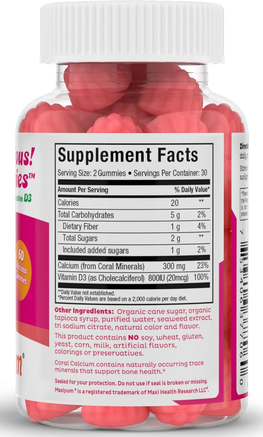 Chewable Calcium Gummies with Vitamin D3 - 60 Count, 300mg Coral Calcium & 1000IU Vitamin D - Kosher Calcium D3 Supplement for Adults, Women, Men, Kids