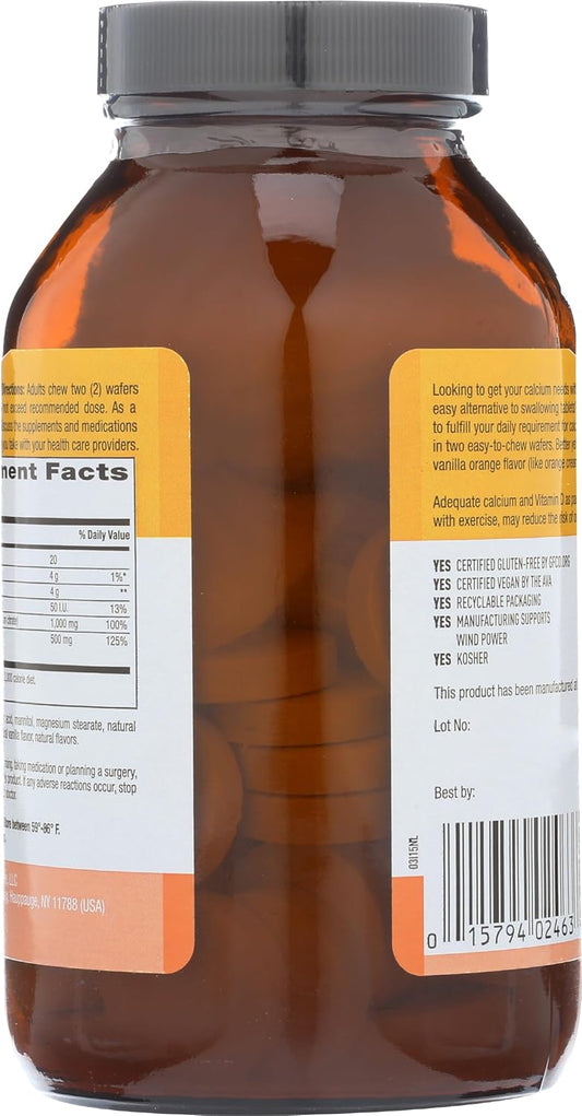 Chewable Dairy-Free Calcium Magnesium with Vitamin D Wafers, Vanilla Orange Flavor - 60 Count, Gluten Free & Vegan Certified
