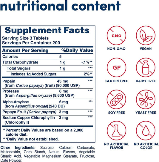 Chewable Papaya Enzyme with Chlorophyll Tablets - Supports Digestion, Nutrient Absorption, and Fresh Breath - 250 Count, Gluten-Free, Vegetarian - American Health