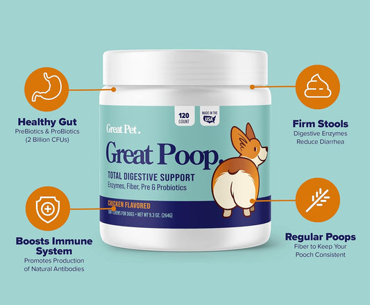 Chicken Flavored Probiotic Fiber Supplement for Dogs - Supports Healthy Gut, Firm Stool & Diarrhea Relief - Pet Soft Chews with Digestive Enzymes & Prebiotics