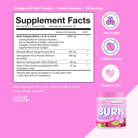 Collagenic Burn Powder with GBB, Ashwagandha & Green Coffee for Metabolism and Wellness - Cherry Limeade Flavor
