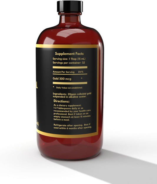 Colloidal Gold 20 ppm in Large Amber Glass Bottle - Natural Brain Support & Cognitive Function Aid by Earth Clinic ®