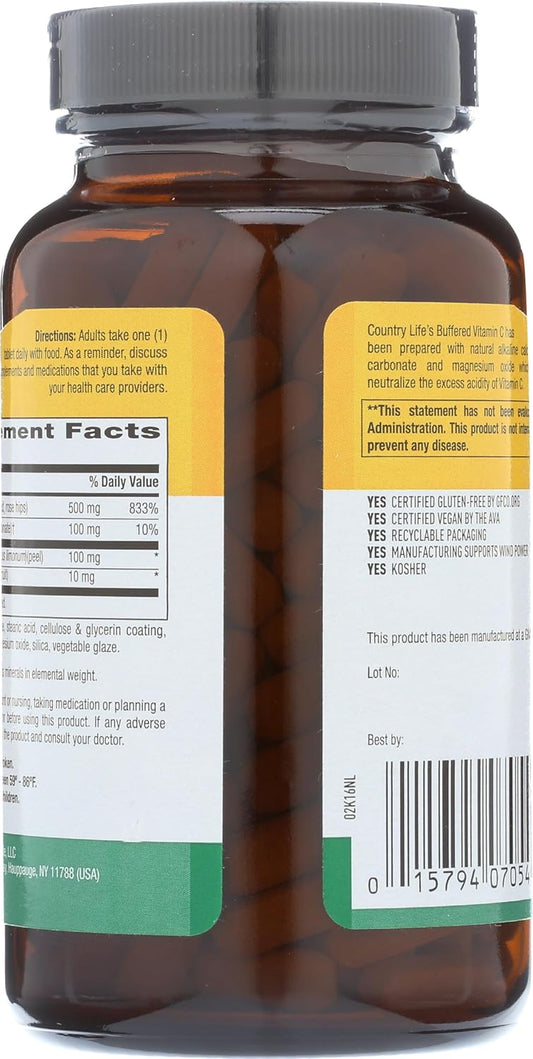 Country Life Vitamin C Buffered with Bioflavonoids - 500mg 250 Tablets, Gluten Free, Vegan Certified