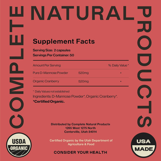 D-Mannose & Cranberry Capsules - 100 Capsules, 1040mg for Urinary Tract Health & UT Flush