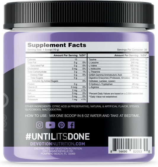 Devotion Nutrition PM Sleep Recovery Drink - Stevia Sweetened for Improved Energy, Relaxation, and Metabolism - 30 Servings (Raspberry Lemonade)